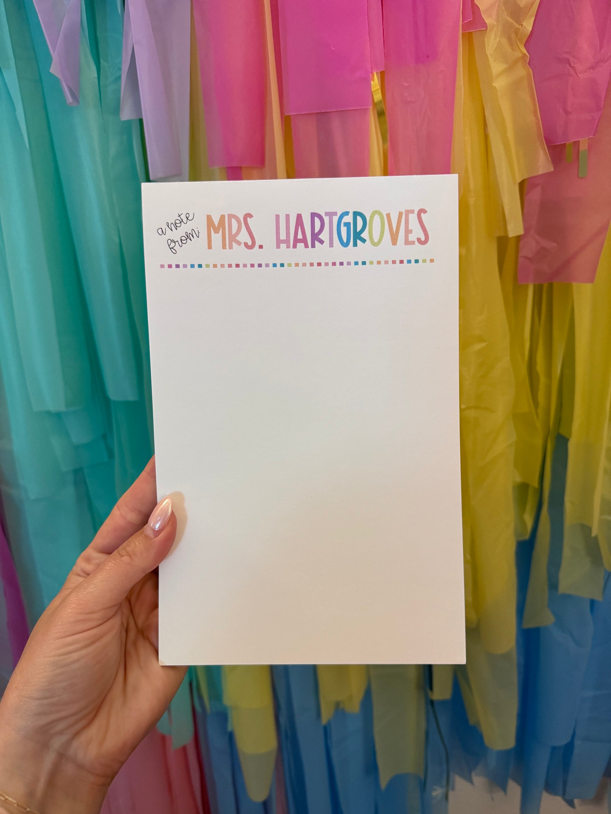 this notepad will be *approximately* 8.5x5.5 - 50 pages. the paper is 24lb - white.